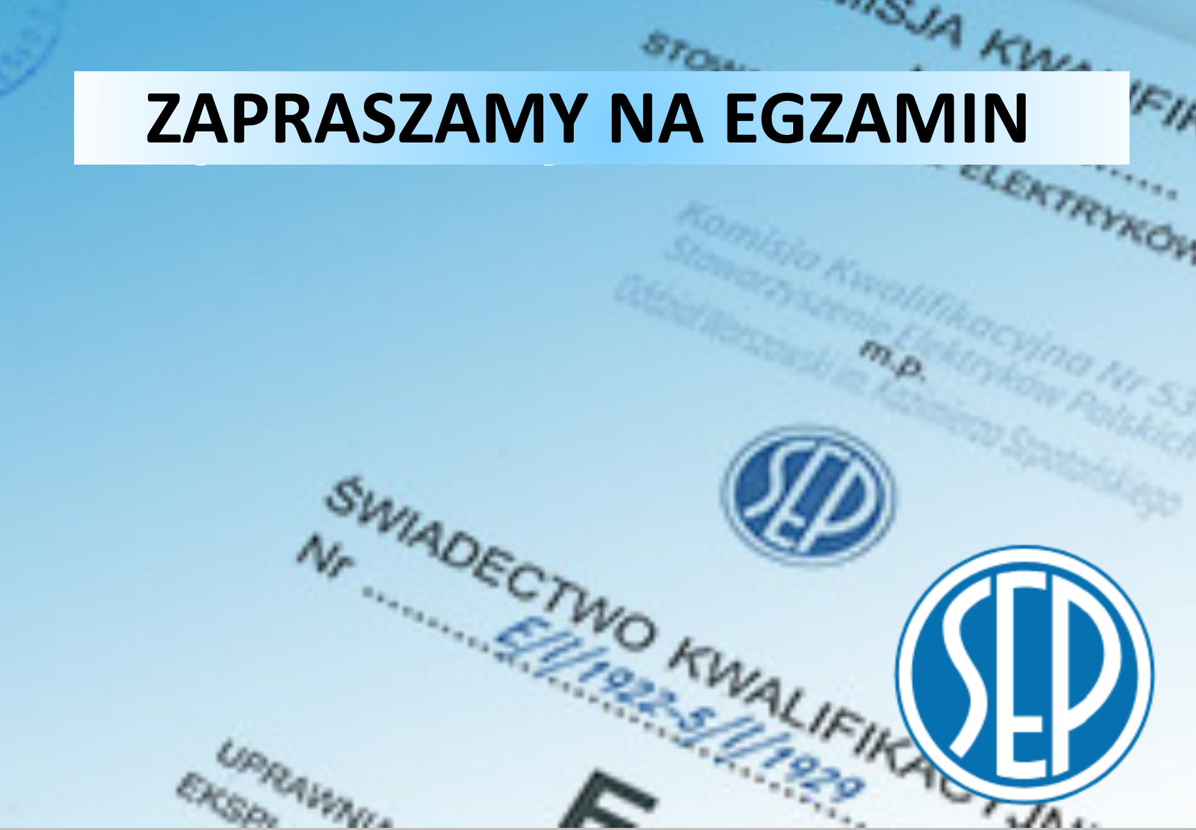Zapraszamy Państwa na egzamin sprawdzający kwalifikację. organizowany przez SEP Warszawa.