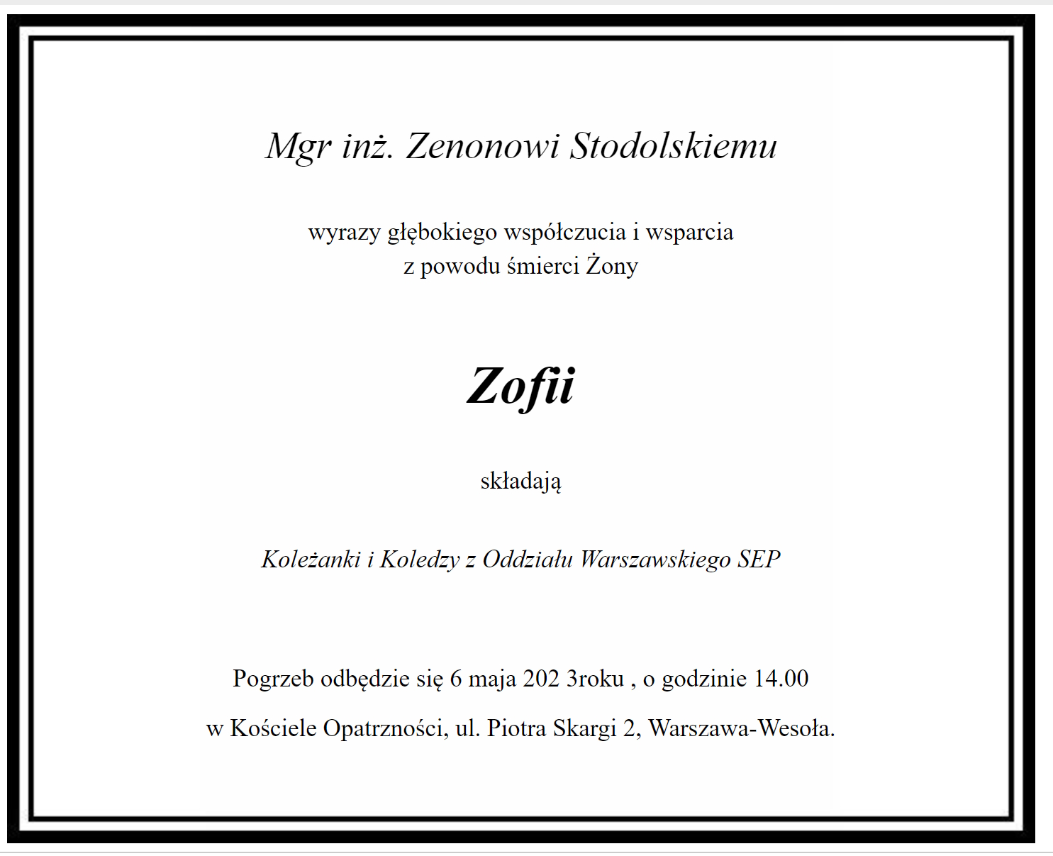 zarząd i przyjaciele z Oddziału Warszawskiego Stowarzyszenia Elektryków Polskich.