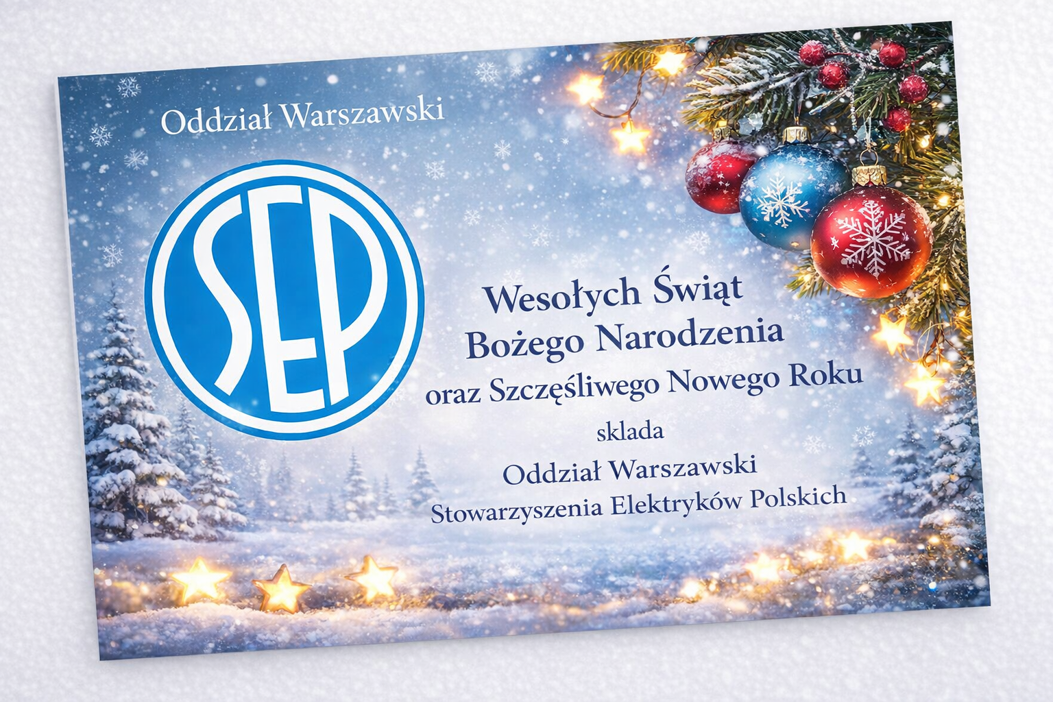 Szanownym Członkom oraz Przyjaciołom Oddziału Warszawskiego Stowarzyszenia Elektryków Polskich z okazji Świąt Bożego Narodzenia składamy najserdeczniejsze życz…